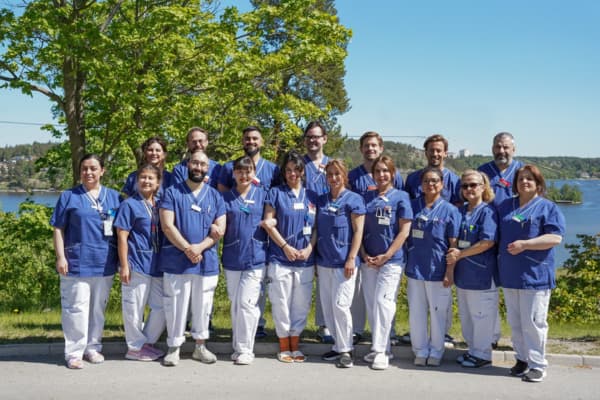Totalt erbjuder vi 34 vårdplatser varav 26 enkelsalar med egen toalett och tv. Våra erfarna specialistläkare och fysioterapeuter finns på plats alla dagar i veckan och omvårdnadspersonal dygnet runt. I vårt team ingår även dietist, arbetsterapeut och kurator måndag till fredag. Vi har också tillgång till logoped.
